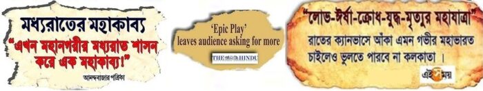Based on play by the same name, the play actually is a 6 hour long concised Mahabharat. This is perhaps for the first time in the theatre history of the country that people have gathered in numbers to see the play overnight.